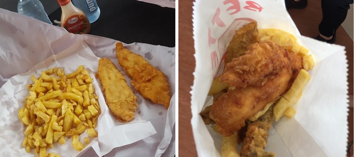 Best fish and chips around, the family that runs the shop are the most wonderful people, they always remember us when we visit and offer a kind word. The fish is crispy and fresh, the burgers are the classic “fish and chips” burger, the chips are the best balance between little crispy crunchy bits and big soft chips. I will always recommend them.